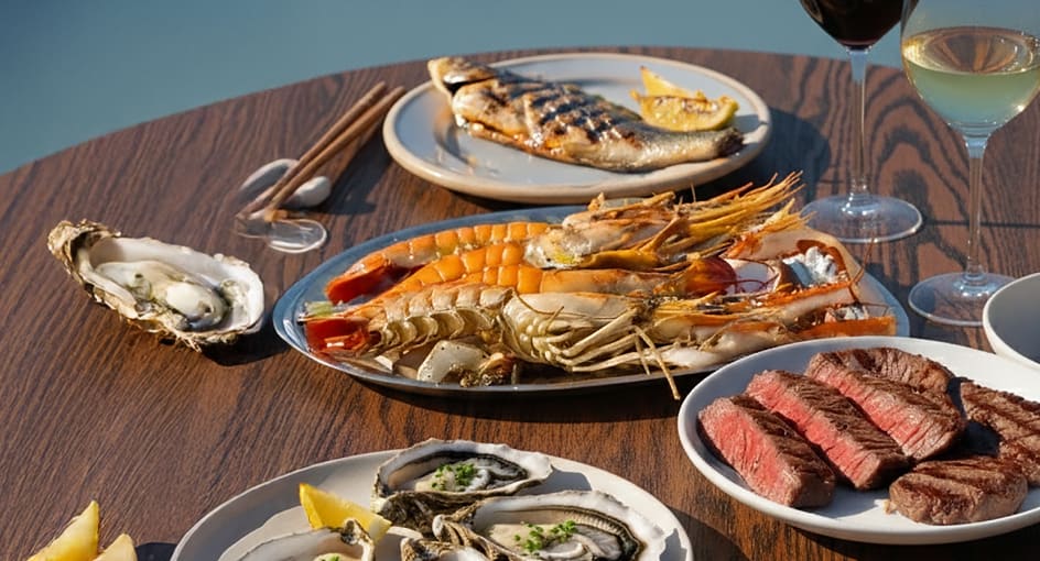 Savour the finest flavours from the grill, with seafood and meats prepared over open fire and paired with vibrant salads, Thai favourites, and a curated à la carte selection. Signature cocktails and fine wines add to the mood, while lanterns and fire pits create a setting made for lingering.